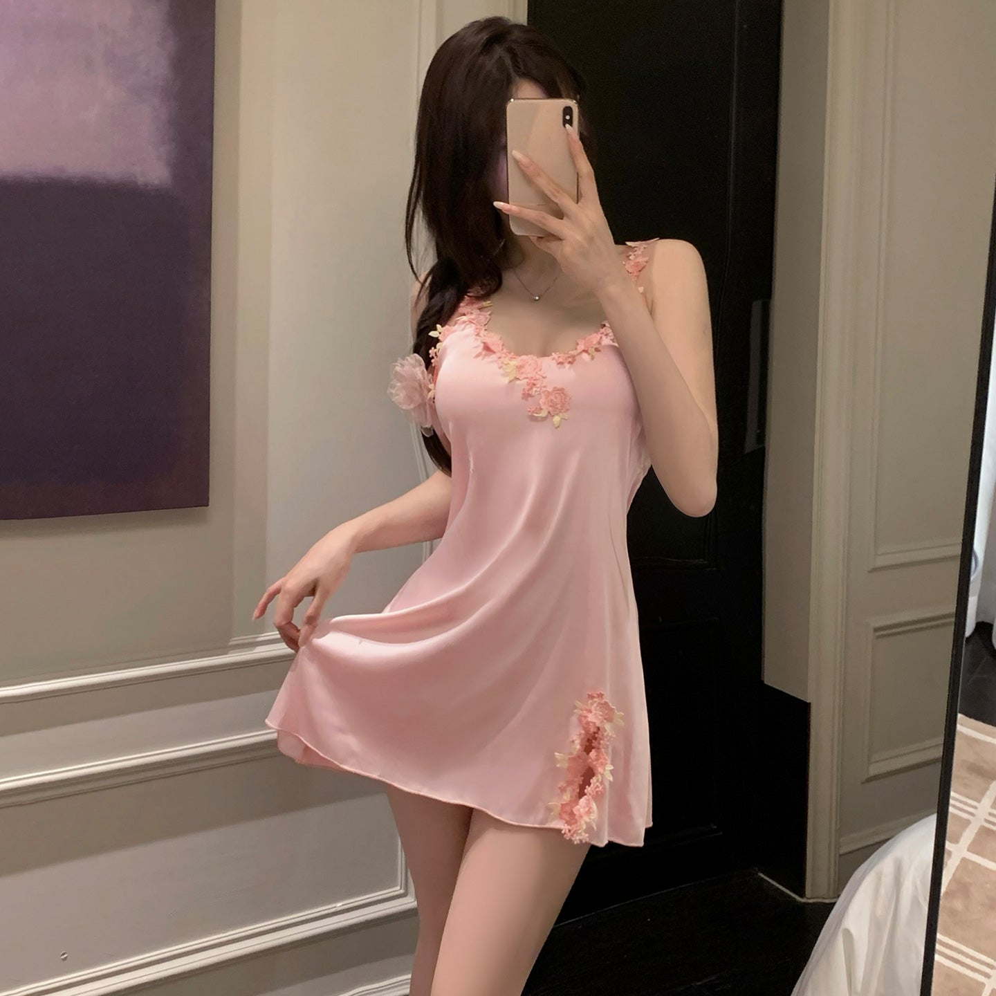 Whether it’s a quiet night alone or a romantic evening with your partner, this pink embroidered satin slip dress makes every moment feel intimate, sexy, and effortlessly elegant – a must-have addition to your lingerie collection. 🌙✨