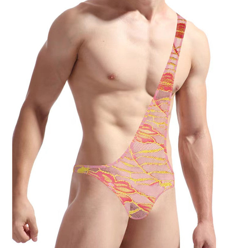Men's Sheer Mesh Sissy See-through Sleeveless Lace Bodysuit