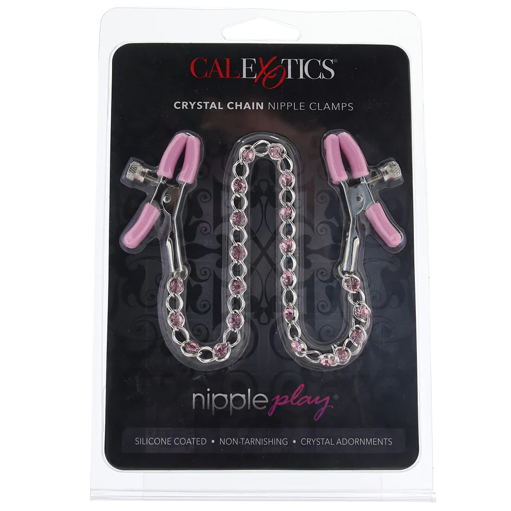 In the land of nipple clamps, options abound. Seriously, you've got your standard alligator clamps, some clamps vibrate, others are weighted, some are spring loaded - our point is that your/your partner's nipple play possibilities are nearly endless. If you're after a pretty, adjustable, crystal-bedecked pair, CalExotics has you (and your nipples!) covered with the nipple play Crystal Chain Nipple Clamps