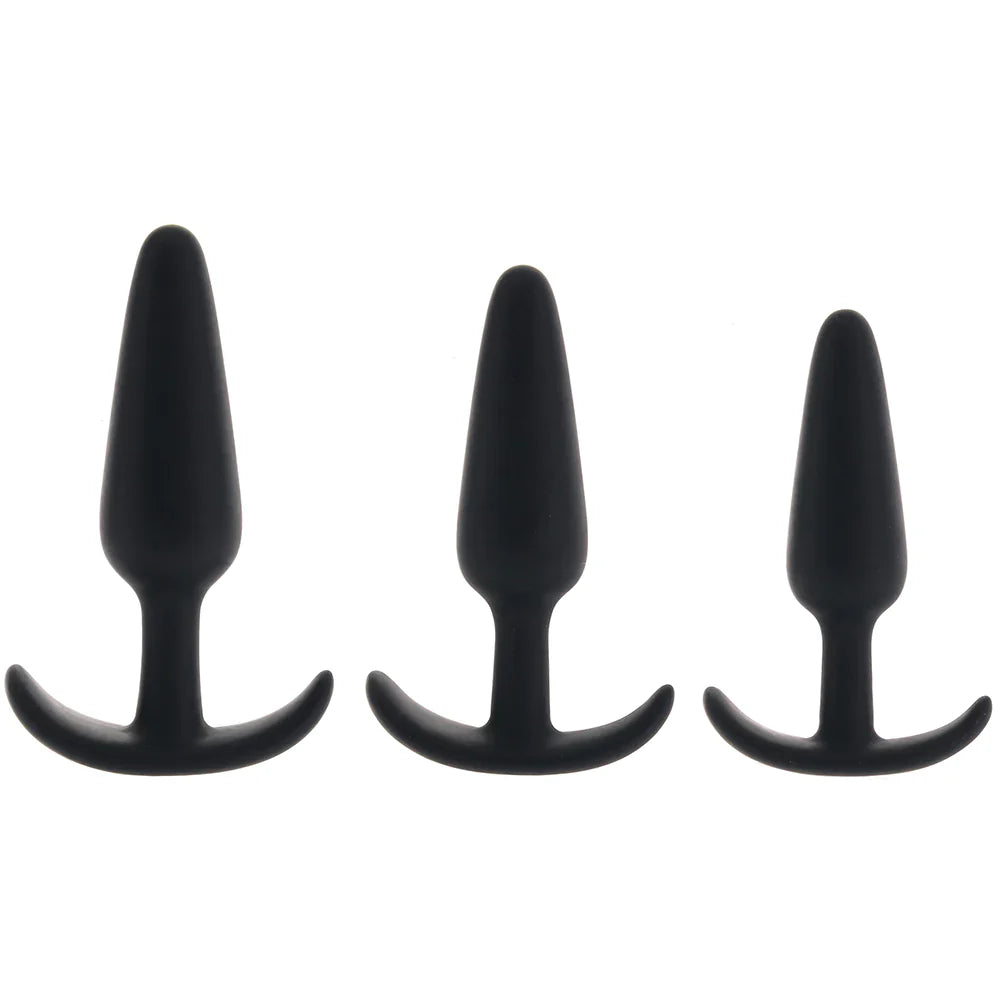 在里面,你会发现三个经典的锥形插头,由黑色硅胶制成。它们的形状都易于插入、快速调整和取出,并具有一个大而弯曲的底座,但相似之处仅此而已。就尺寸而言,它们非常不同,所有这些都更好地帮助你 a) 进行锻炼或 b) 直接进入屁股游戏的幸福之中。