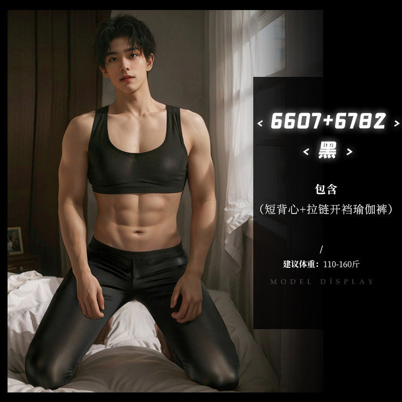 这款男士性感短背心+拉链开裆瑜伽裤套装,专为追求时尚与舒适的男性设计,完美融合了运动与性感元素,让你在派对或日常生活中尽显魅力。独特的拉链开裆设计,既增添了几分性感,又提供了运动所需的灵活性。